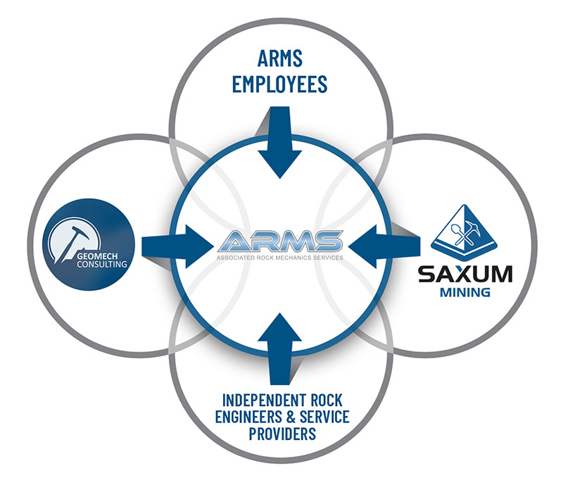 Saxum Mining is a trusted provider of professional, independent, site-specific, and turnkey rock engineering solutions, with safety and technical excellence at the core of our approach. To expand our professional service network, we collaborate with Associated Rock Mechanics Services (ARMS) to render the best possible rock engineering solutions. We have more than 35 years’ experience in rock engineering in the mining environment.